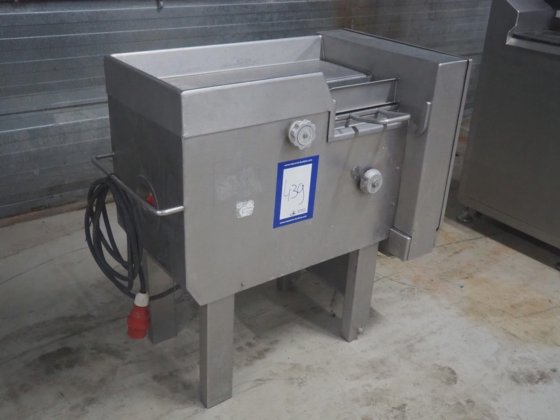 Treif mobile dicer, type: 0803, machine number: 08032.66511.0880-1, year of construction: 1987, 380/220 V, 3 Ph, 50 Hz, 2.7/16 A, chamber: 85 mm x 85 mm, total dimensions: 1100 mm x 600 mm x 980 mm.